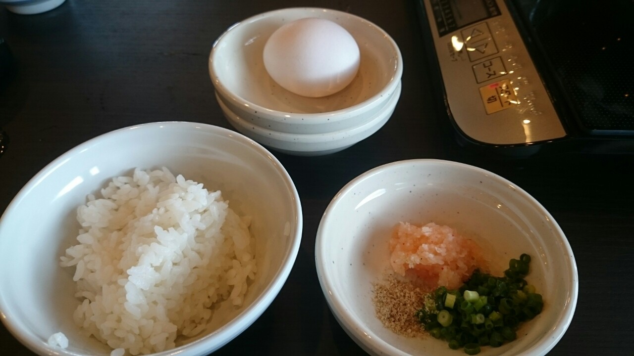店員さんに『雑炊をお願いします』と伝えると、卵(無料)を持って来てくれます。