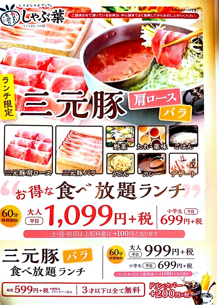 こんなにお得で楽しいしゃぶしゃぶブッフェの【しゃぶ葉上水前寺店】に一度いかれてみて下さい。