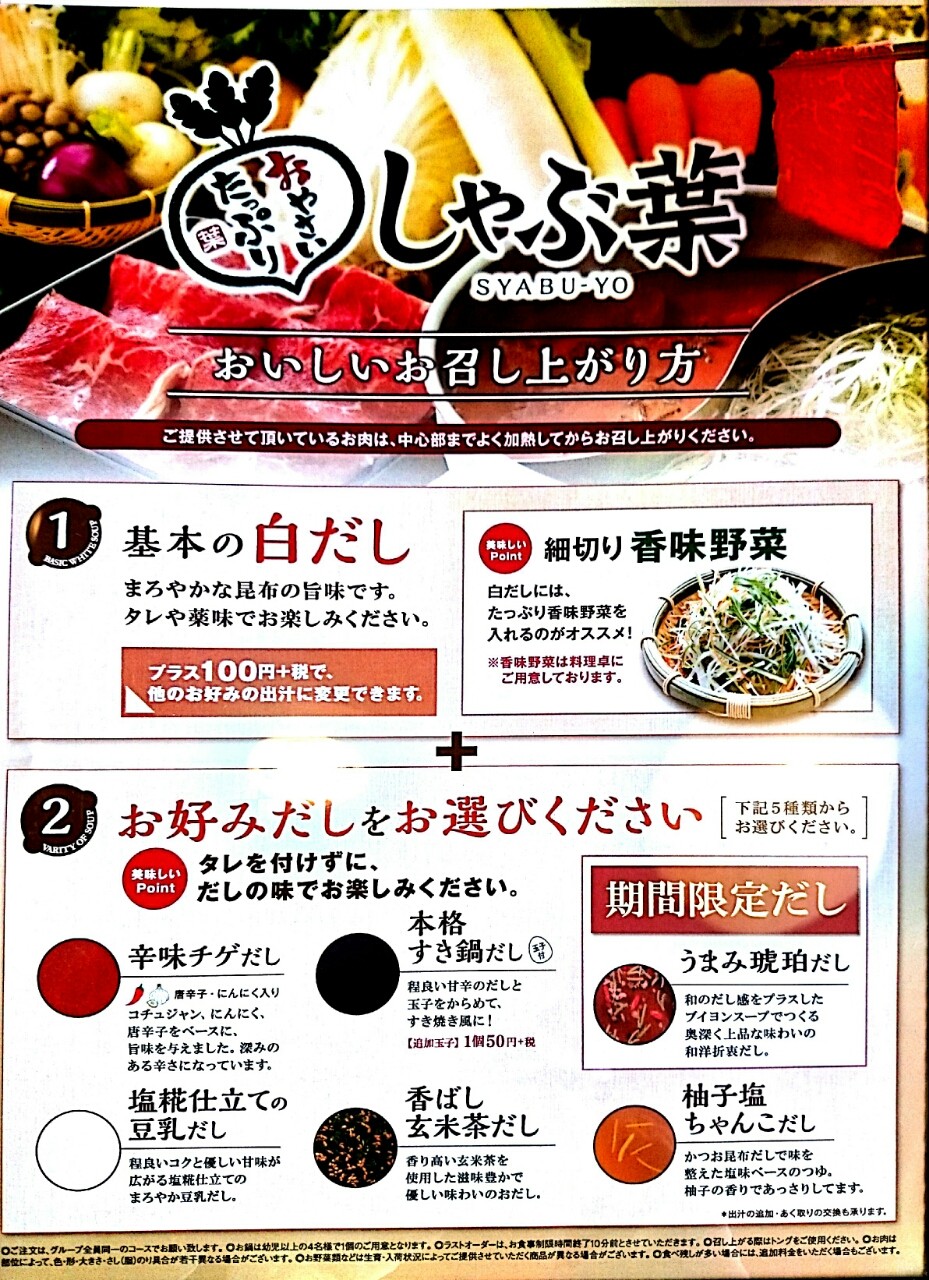 しゃぶ葉のだしは、なべが2つに区切られており、基本の白だし+5つのだしのいずれかを選択することになっています。