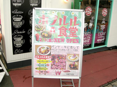 以前は「カフェビキニ」という南国風なカフェでしたが、2月1日に店舗をリニューアル。店名も「ホノルル食堂」と、よりハワイ感が全面に出たお店になりました。