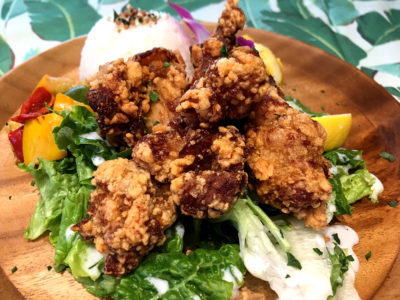 ハワイのホノルルなどで定番として出されているらしい、もち米の粉を使ってのカリっと揚げられたハワイ風唐揚げ「モチコチキン」。