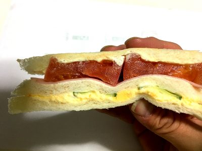 トマトは大き目にカットしてあり、具材にはトマトと相性の良い、きゅうり、たまご、ハムなどを合わせているそうです。
