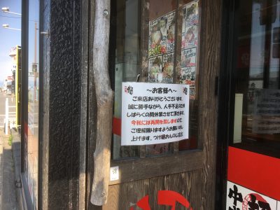 そして私はいつも通り、おんのじさんの濃厚つけ麺を食べに、よく足を運ぶ「新市街店」のお店に行ってみると、こんな張り紙が。。。
