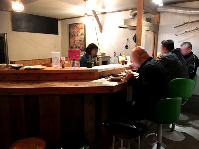 店内はカウンター席のみ10席くらいです。すでに地元の方を中心に食事をされる常連に近い方がいるようです。