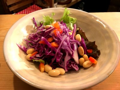 ローフードとしてサラダ新鮮な味わい。特に大豆は低温調理で煮られており、栄養素を逃してません。