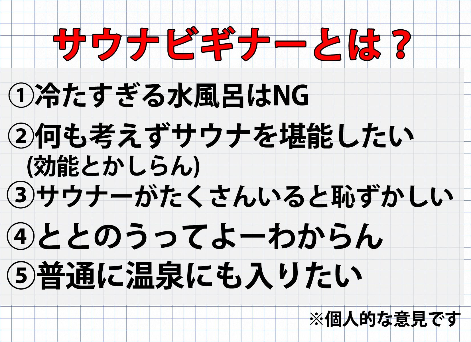 サウナーの方も多くいらっしゃるんじゃないですか?ビギナーからすると輝いて見えて、なんか勝手に恥ずかしくなってくるんですよね。(個人的主観)