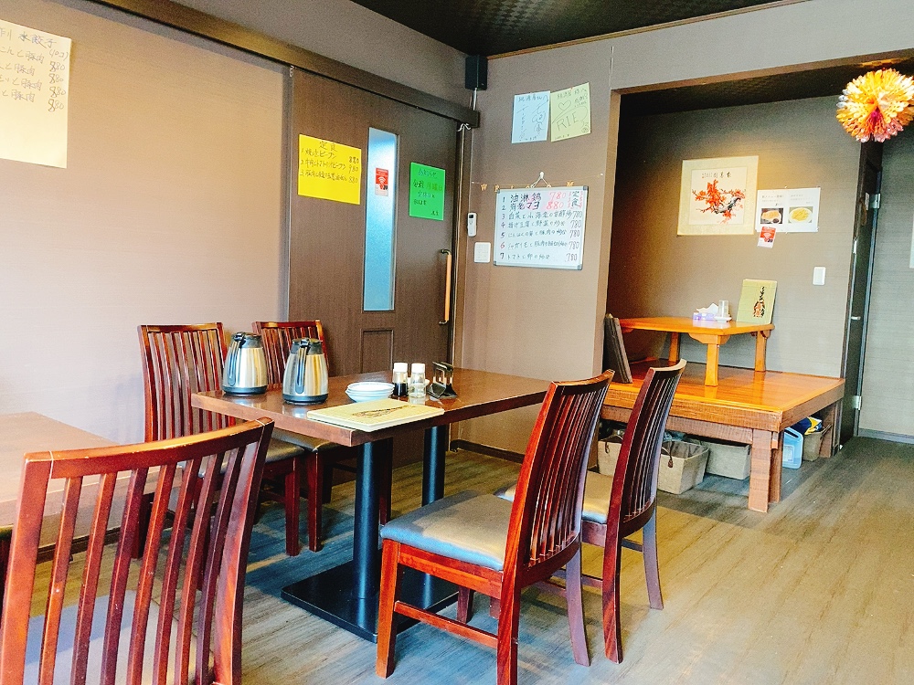 店内はテーブル席4つ、小上がり1つ。