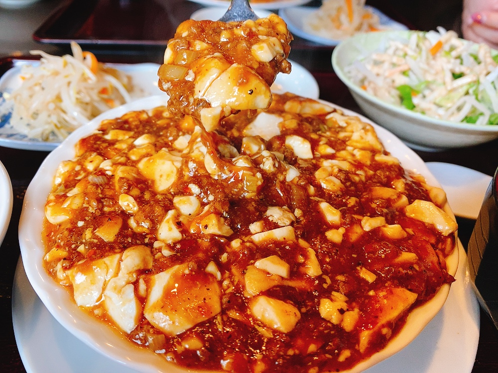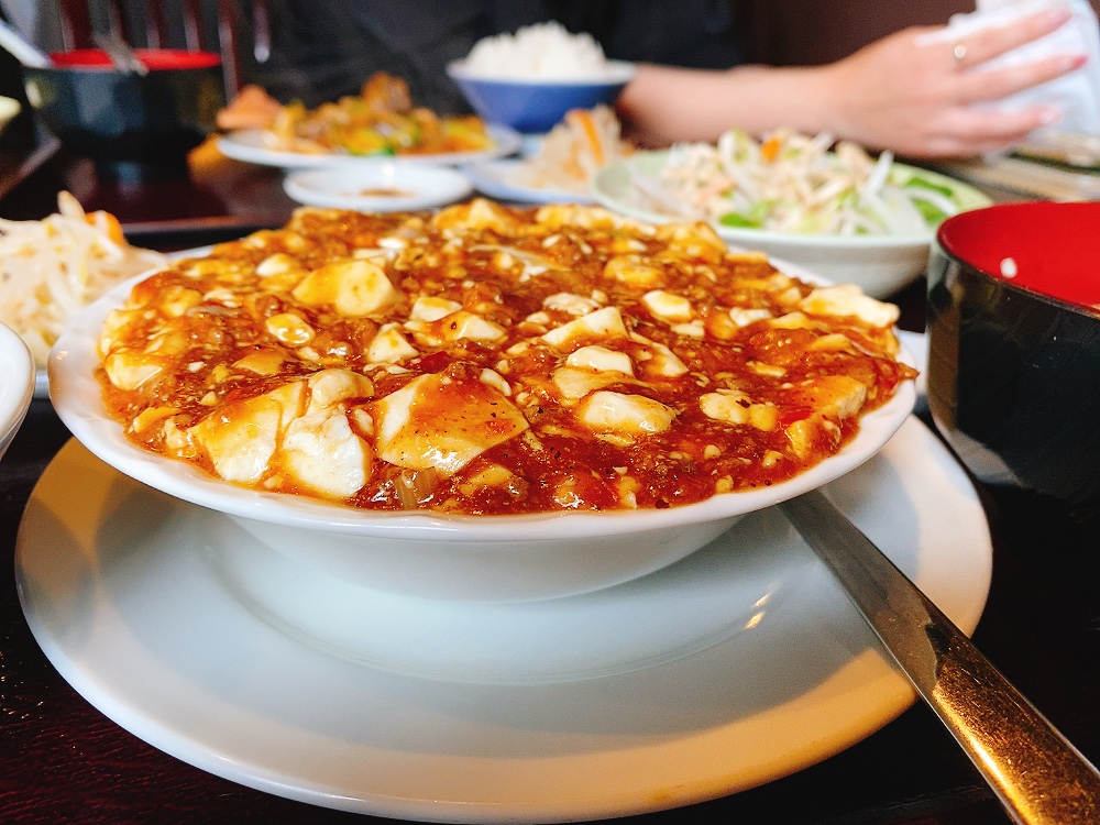 麻婆豆腐は深めのお皿にも関わらず、スレッスレまで注がれているのがお分かりでしょうか。