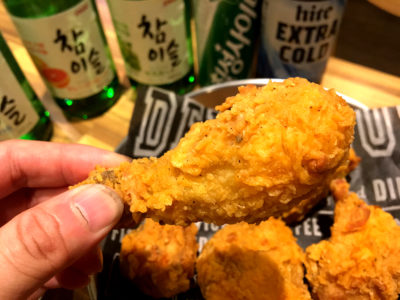 韓国フライドチキンは脂がさほどなくあっさりと食べられます。このチキンをつまみにビールを飲むのが「チメック」という韓国の食文化なのだそう。