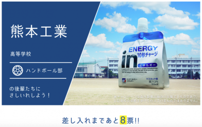 10票以上の投票があった部活から抽選で500部活にinゼリーが無料で差し入れされます!