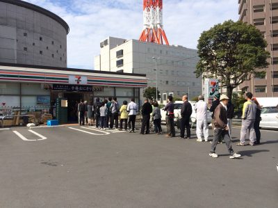 食べ物を求めコンビニ並ぶ大勢の人