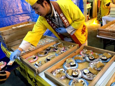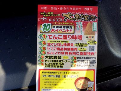 どうやら松合食品さんの、お味噌などで試食品を作り食べさせて頂けるそうです。松合食品さん太っ腹です。