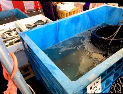 少し離れた漁業所の場所が駐車場となります(9時半~と聞いていましたが9時半にはもう直売所前の駐車場はいっぱいでした)