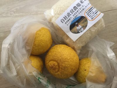 自社直営農場の美味しいそうな無農薬の果物にお米