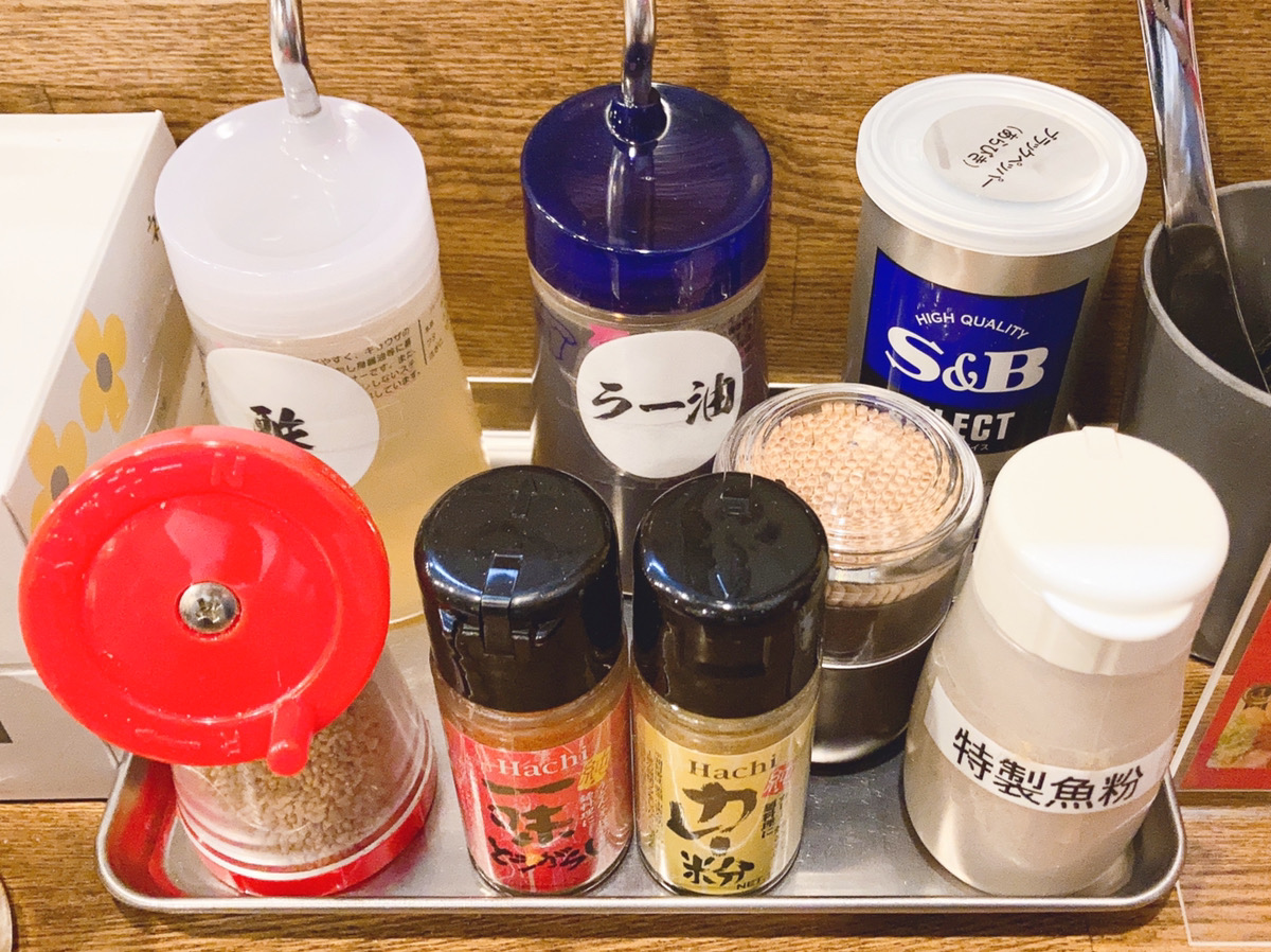 奥に設置してあるトレイにはずらーっと並んだ調味料。