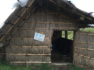 展示室には、「進撃の巨人」のロケの様子のパネルも展示してあるので、ファンの方は必見です。また、ミニ展示室の前には、阿蘇で有名な草泊まりもあって、なんと1泊500円で宿泊できるそうです。