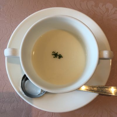 セットのサラダとビシソワーズをいただいてワクワクしていると…