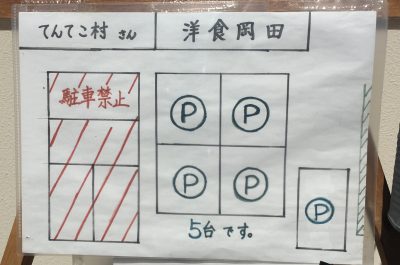 「岡田」と書かれた駐車場に停めてください!