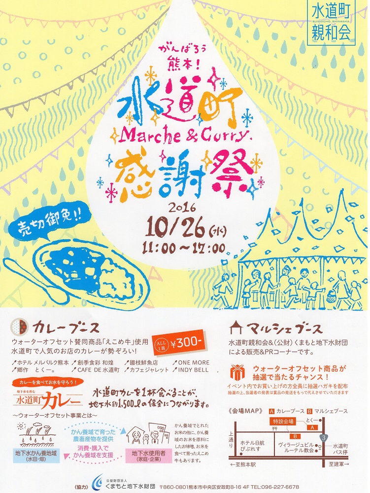 このイベントは、くまもと地下水財団の協賛の元、熊本の一番の魅力でもある“綺麗な地下水”を守って行こう!という取り組みのため、