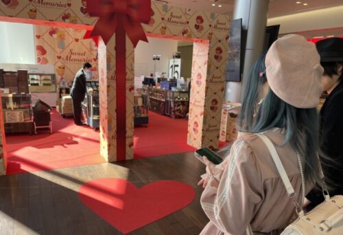 入ってすぐにバレンタイン特設コーナーがあり、でっかいハートがお迎えしてくれます。