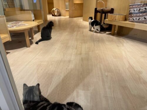 …を外から眺めて癒されます。ガラス越しでも猫は可愛いです。