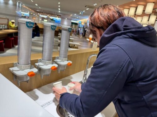 というわけでまずはフードコートのお水で乾杯。