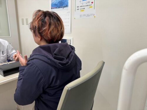まずは受付をします。タブレットで必要な事項を入力したり、体重を測ったりします。