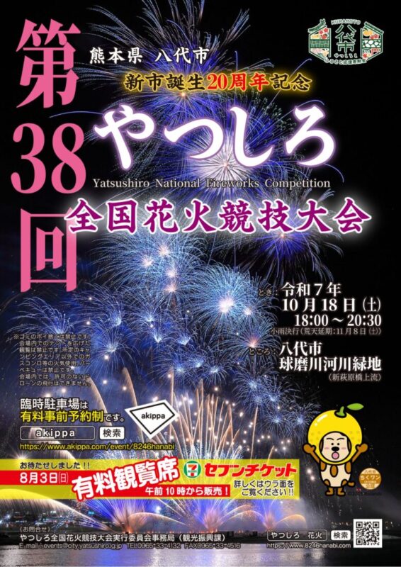 と歌ってしまうほど、いよいよ2025年の大きな花火大会はこれで最後(多分)。八代の花火競技大会が開催されます。この時期の夜は少し冷えるので羽織ものを持参しておくと安心ですよ。