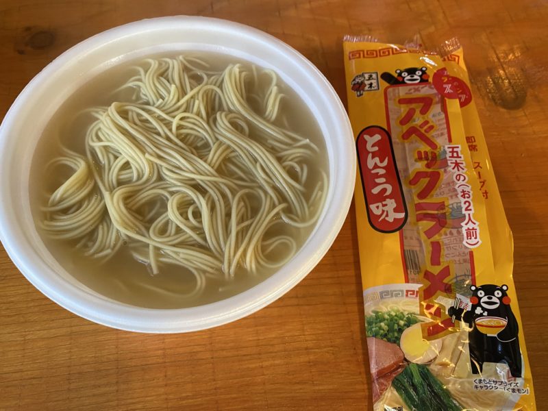 続いて、くまモンの熊本ラーメンです。アベックラーメンと同じ五木食品の商品です。
