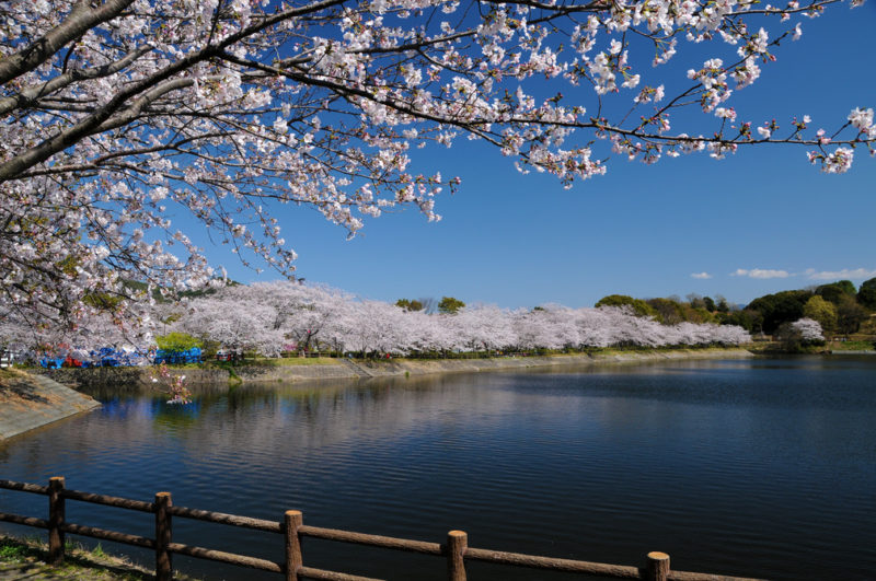 宇土市花園にある、花園池と立岡池を中心とした立岡自然公園。約2千本の桜が広がっています。シーズンになると「うと花園さくらまつり」も開催されますよ!