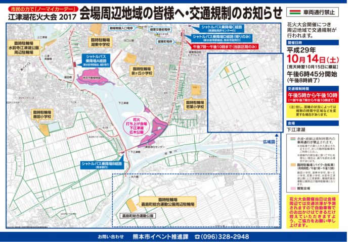 場所は従来通り下江津湖周辺で開催。雨天時には翌日の30日が振替予定になっています。