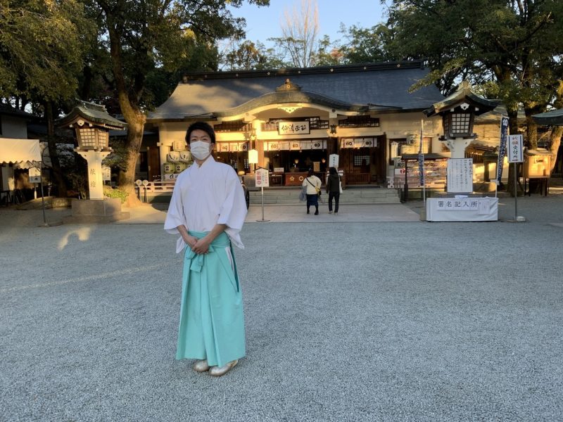 健軍神社では、密集を避けるために楼門から拝殿まで一方通行とするそう。帰りの際は北門、南門から外に出るルートになります。
