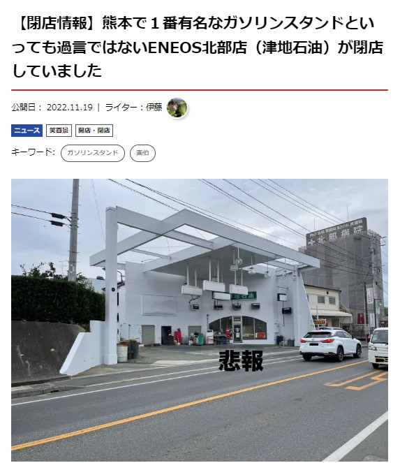 「エネオス北部店(津地石油)閉店」の記事が2位。