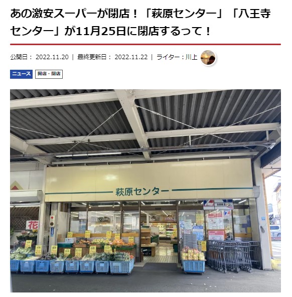地元のアノ店やコノ店がなくなっていくのは、やはり寂しい。