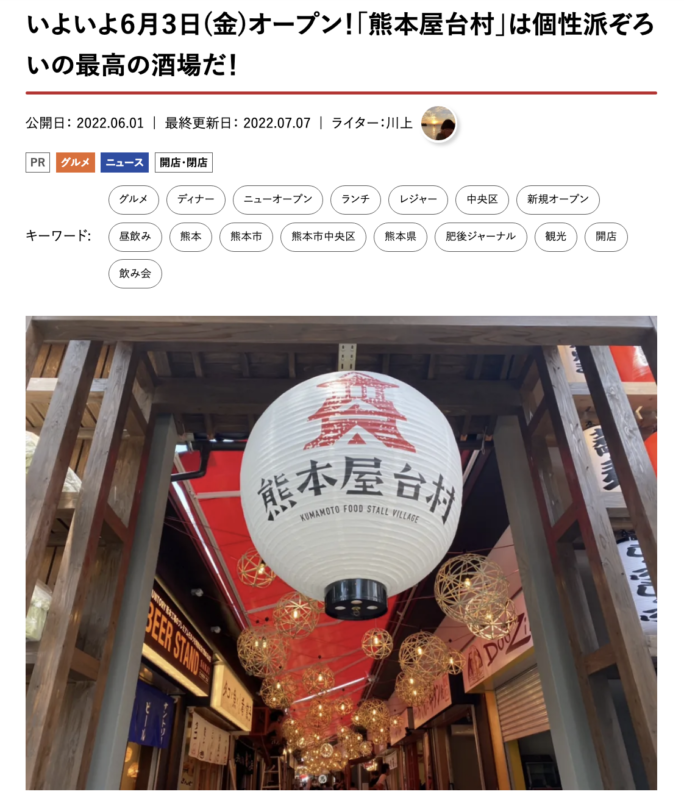 川上が書いた「熊本屋台村」の記事が1位。