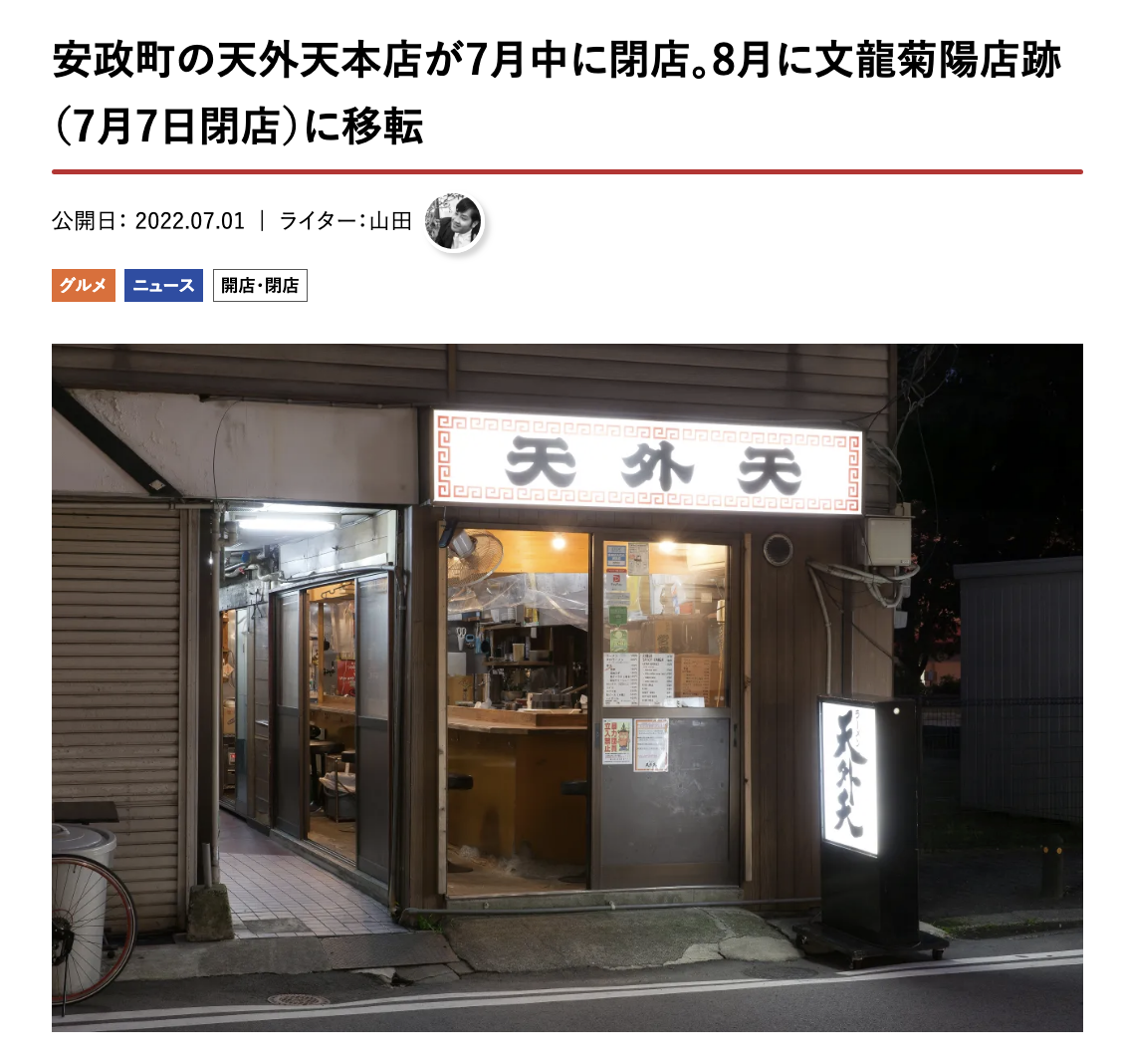 山田が書いた「街の天外天が閉店し、菊陽文龍後に移転」の記事が1位。