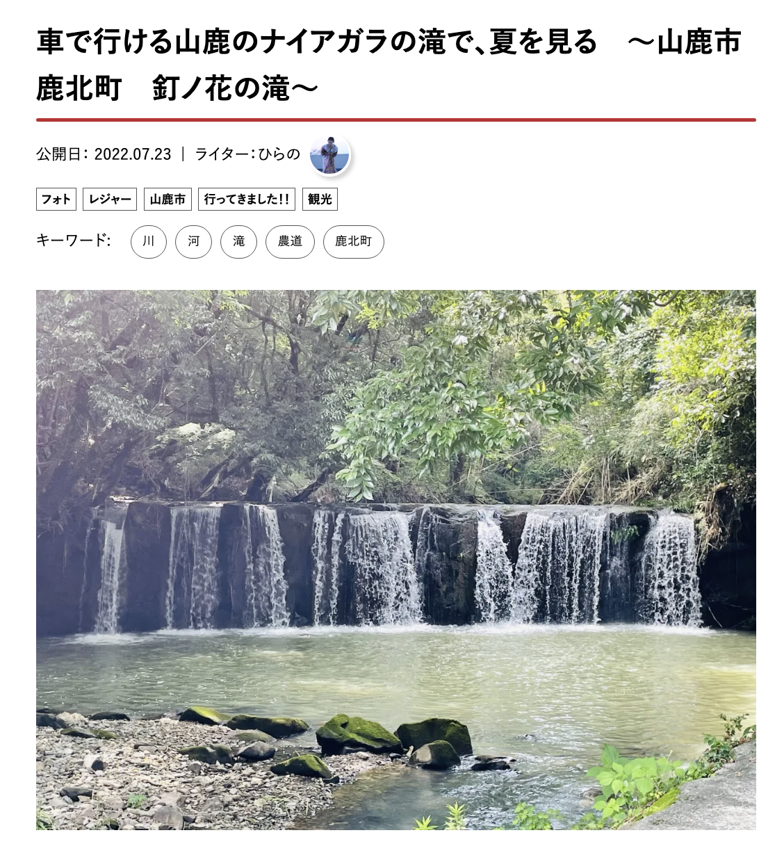 涼を感じさせる「釘ノ花の滝」記事が2位。