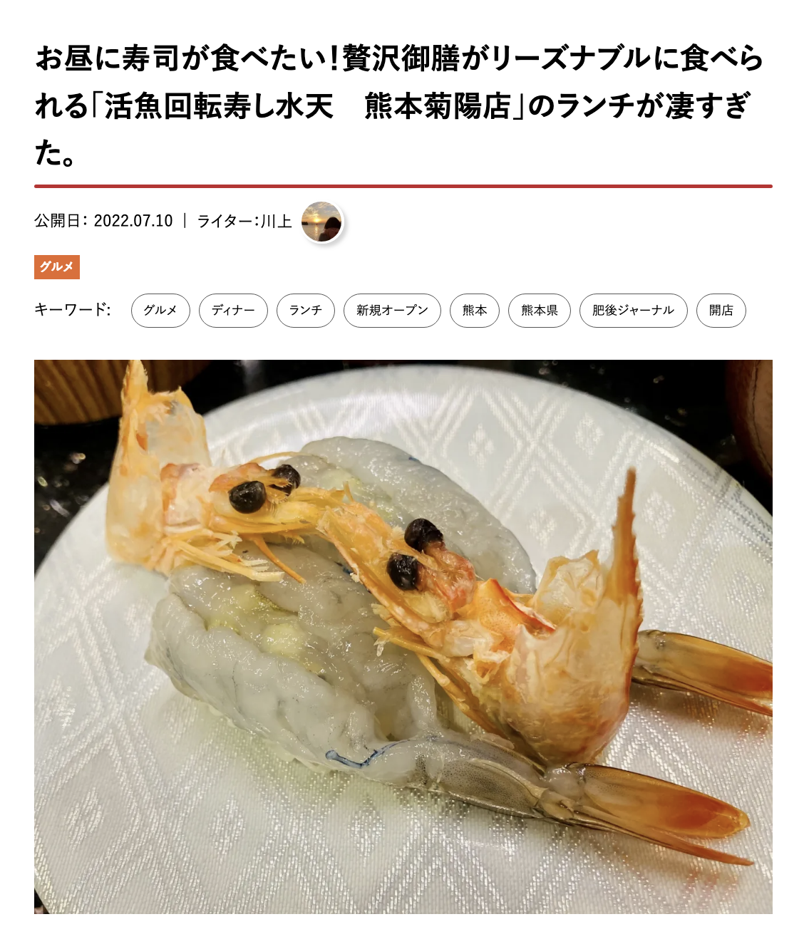 川上が書いた「水天」の記事が5位。