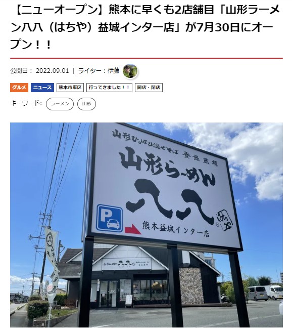 伊藤が書いた「山形ラーメン八八益城インター店オープン」の記事が1位。