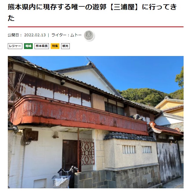 ムトーが書いた”熊本唯一の現存する遊郭「三浦屋」”の記事が1位。