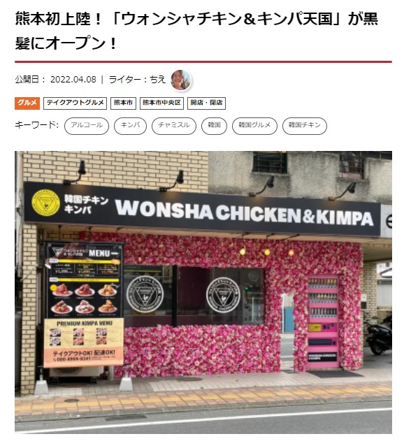5位は、「ウォンシャチキン&キンパ天国」の記事。