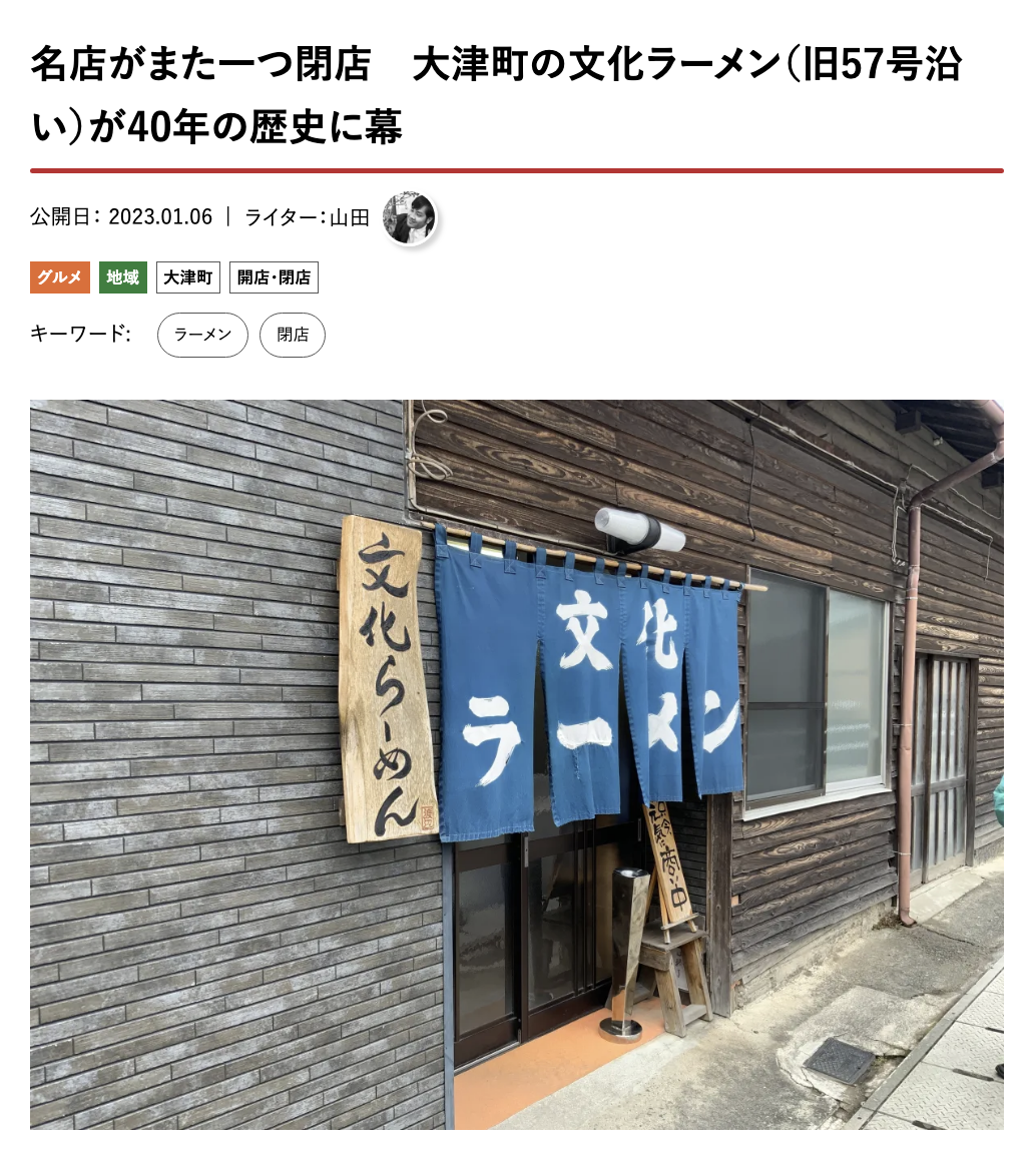 「文化ラーメン閉店」の記事が2位。