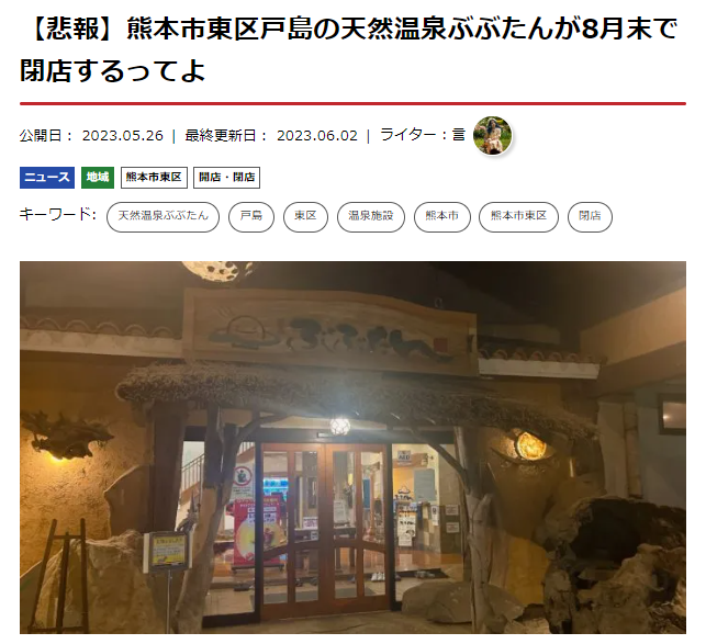 2位は「ぶぶたん閉店」の記事。