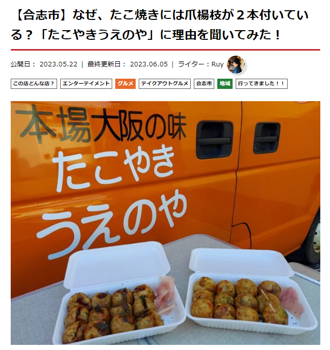 5位は「たこやきうえのや」の記事。