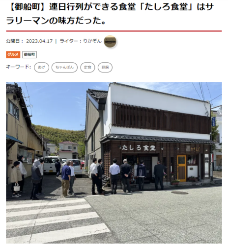 5位は御船の老舗食堂「たしろ食堂」記事。