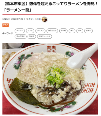 「ラーメン一龍」のこってりラーメンをご紹介した記事が第3位。