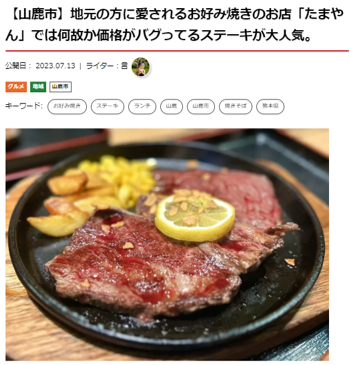 ボリューム満点のステーキが目を惹く「TAMAYAN」の記事が第4位。