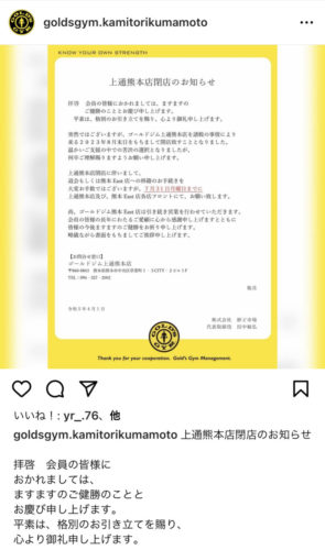 ゴールドジム上通熊本店 閉店