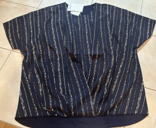 フロントは総柄でバックは紺一色。体系をカバーしてくれるデザインで着やすそうです。