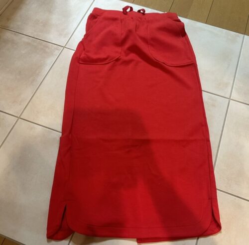 昨年の秋ごろに流行した赤いスカート。ストレッチ感があるスリット入りで歩きやすそうです。